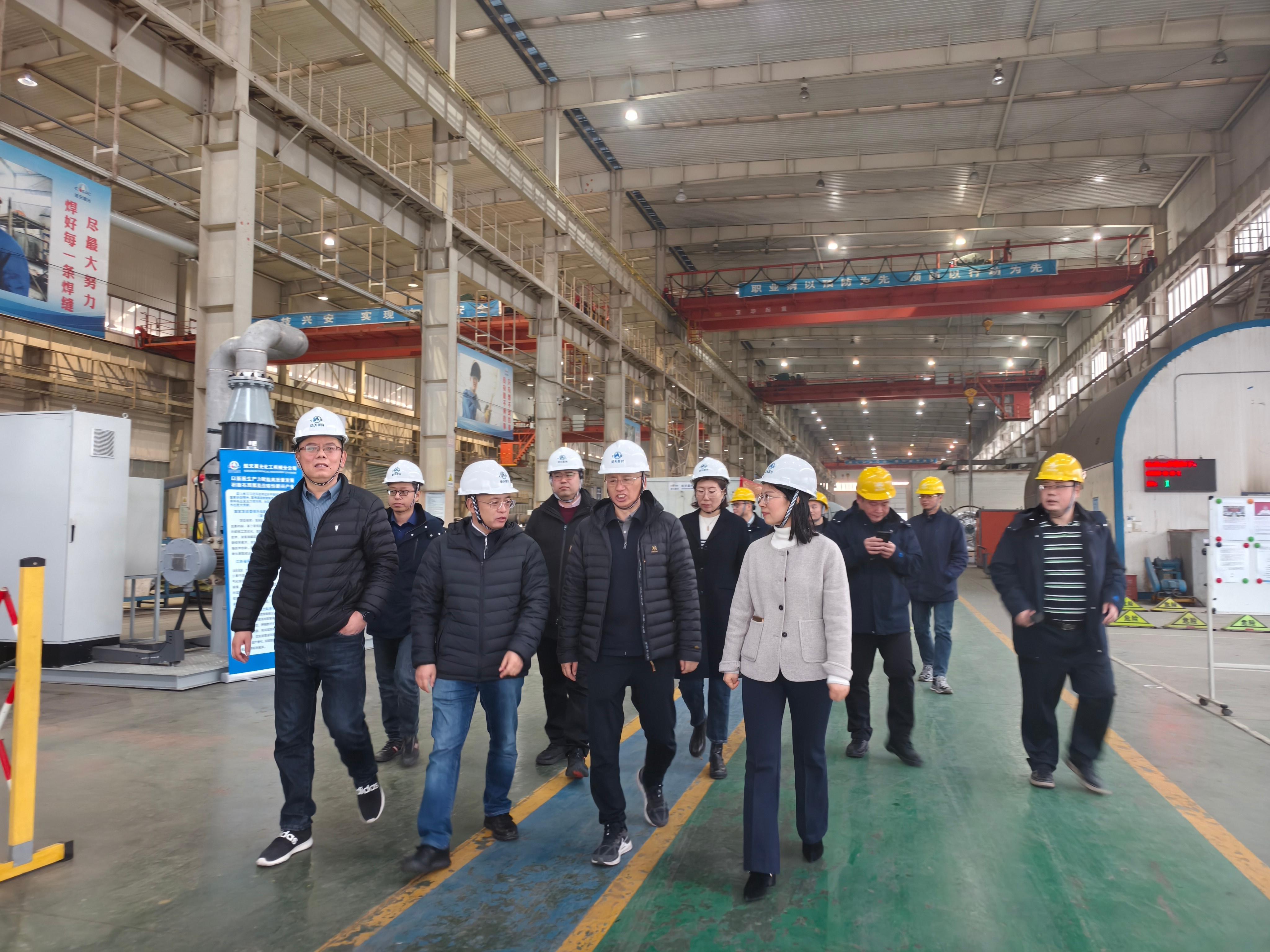張曉艷對蔡總一行的到訪表示熱烈歡迎,對國家管網集團建設項目管理分公司多年來對公司的大力支持表示感謝,希望雙方加大合作力度和深度,在加強長輸管線領域合作的同時,引領重要設備國產化及重要技術創新,共同為國家能源行業發展貢獻力量。化機分公司總經理毛長鈞介紹了分公司歷史及生產資源情況,希望雙方充分利用各自優勢,圍繞“新型環保過濾分離器”、“站場非標設備撬裝模塊化”、“LNG冷能綜合利用”、“氫能儲運”等方向開展合作。蔡朝輝對公司的生產制造能力表示高度認可,對公司在以往工程建設項目上做出的貢獻表示感謝,希望公司在后續項目中一如既往給予支持。