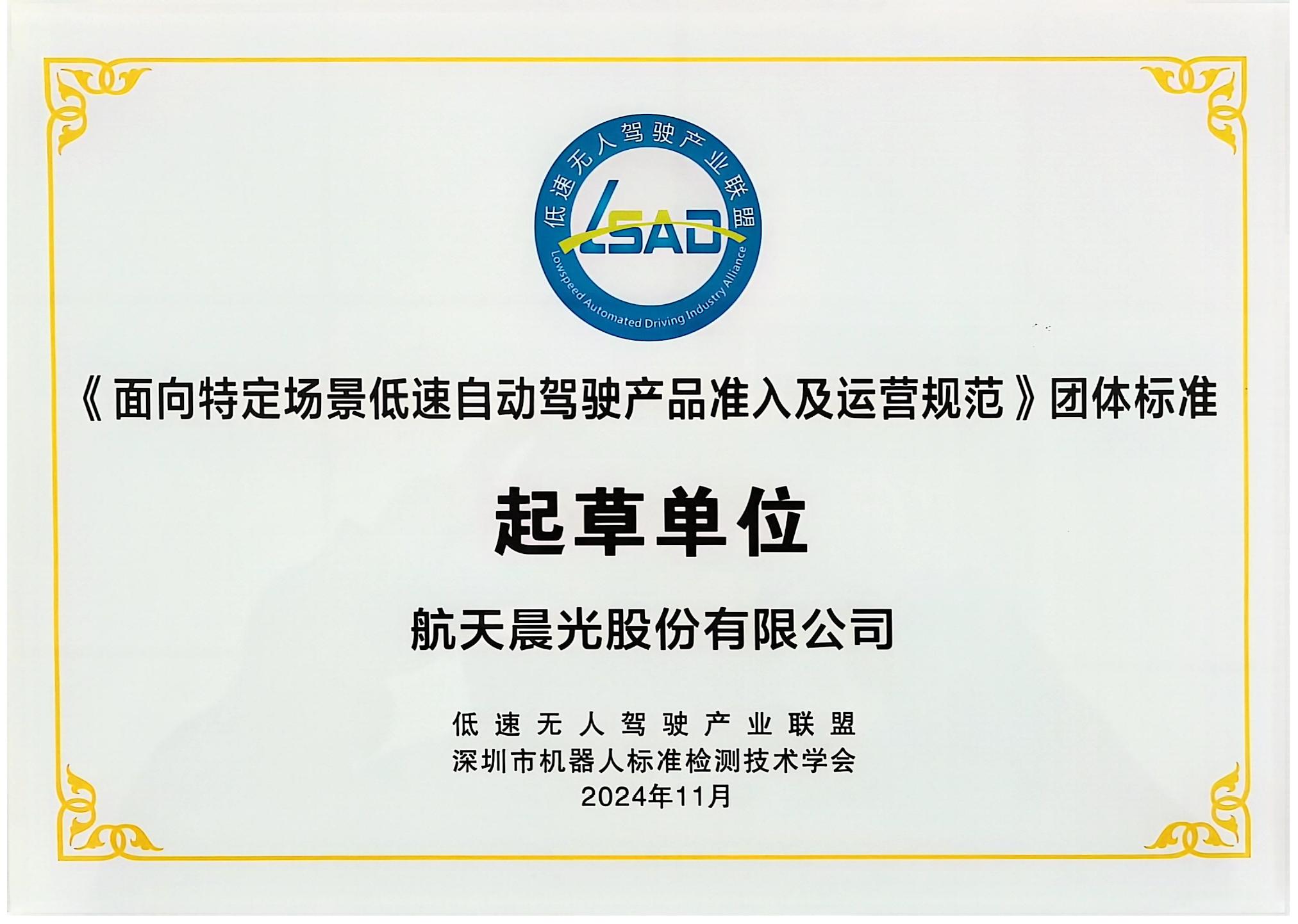 近日,在威海盛大召開的2024(第四屆)低速無人駕駛行業(yè)發(fā)展年會暨中韓(威海)低速無人車及移動機(jī)器人應(yīng)用發(fā)展大會上,航天晨光作為深耕高端裝備制造領(lǐng)域、積極開拓低速無人駕駛賽道的先鋒力量,憑借深厚技術(shù)積淀與卓越行業(yè)影響力,與眾多行業(yè)領(lǐng)頭企業(yè)精彩登臺發(fā)布《面向特定場景低速自動駕駛產(chǎn)品準(zhǔn)入及運營要求》團(tuán)體標(biāo)準(zhǔn),為產(chǎn)業(yè)規(guī)范化、高質(zhì)量發(fā)展注入強(qiáng)勁動力。